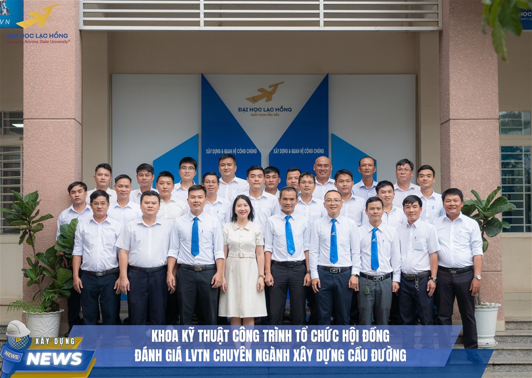 Khoa Kỹ thuật Công trình, Trường Đại học Lạc Hồng trân trọng tổ chức Hội đồng đánh giá luận văn tốt nghiệp dành cho sinh viên hệ Văn bằng 2 – Liên thông Ngành Xây dựng Cầu đường, đánh dấu cột mốc quan trọng khép lại hành trình học tập và chuyển mình bước vào môi trường nghề nghiệp chuyên nghiệp.