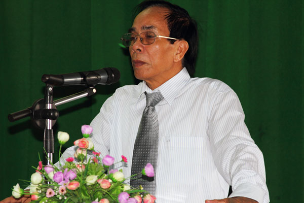 Rector Tran Hanh speaks at the ceremony.
