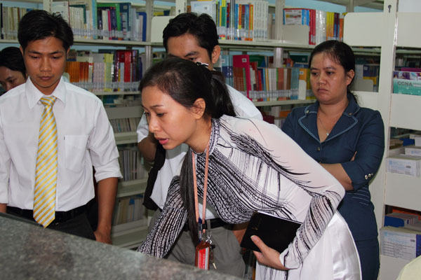 On this occasion, the delegation was introduced Lac Hong University’s library system as well as its management and development by Deputy Director of Information and Resources Center Huynh Cao Tuan.  Mr. Tuan also shared experience in resources development, management by software and library operation to produce the highest effect with the delegation.
