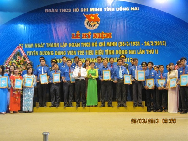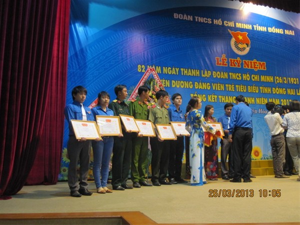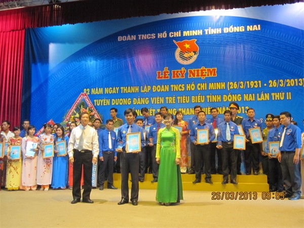 A ceremony was held on March 26 at the Meeting-hall of Dong Nai province's Police to mark the 82nd anniversary of the Ho Chi Minh Communist Youth Union (March 26, 1931 -  2013) and honour oustanding Youth Union members with the great participation of delegates from different department, agencies, localities and more than 500 typical youth members across the province. The event was organized by the provincial Youth Union. LHU was honored to have 6 individuals and 1 collective who were commended at the event, including 5 outstanding  individuals recognized as typical young Party members by provincial Youth Union. They were  Deputy Standing Secretary of Youth Union Tran Tien; Deputy Secretary of YU Vu Van Tuan; Members of YU Standing Committee Mai Duy Dat and Le Phu Dong; and Member of YU Central Committee Dang Dai Hung.